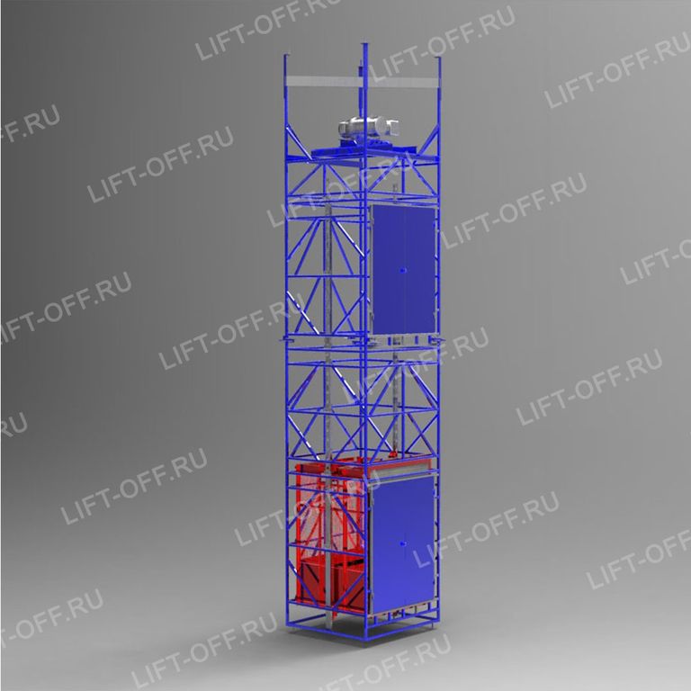 Грузовой подъемник в металлической шахте представляет собой надежную конструкцию цвет окраски выбирается заказчиком.